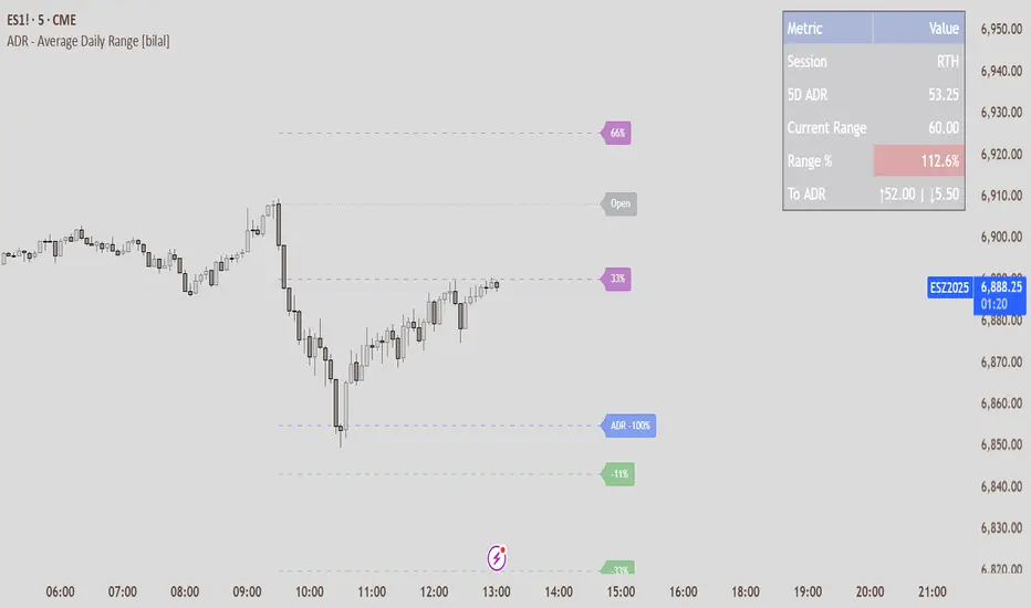 Professional ADR indicator designed specifically for index futures traders. Calculate and visualize Average Daily Range with multiple session options, fractional levels, and higher timeframe context.