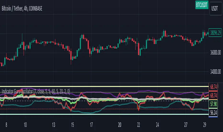 The "Indicator Guru Oscillator" is a custom trading indicator designed for technical analysis on financial charts. It combines elements of the Relative Strength Index with additional features to provide insights into potential overbought and oversold conditions.