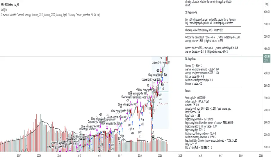 You do not need to use this strategy for a buying signal only. You can use this for a more comprehensive analysis of how return per month has looked historically. It's easy to analyze, by flipping through all the months of the year. You will see average return per month, but also the largest return and decrease for each individual month.