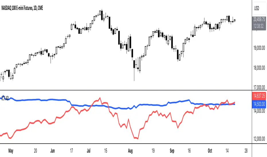 - Calculate the shift by subtracting the "Open vs Close" line value from the ICT Accumulation/Distribution (AD) line value.