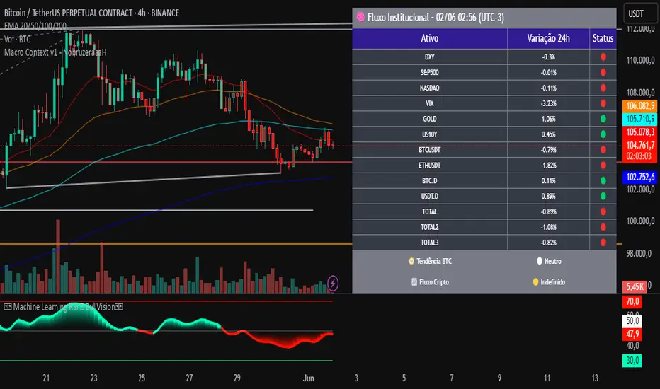 This is a sophisticated real-time market analysis tool that monitors critical institutional correlations across traditional and cryptocurrency markets. This indicator provides traders with actionable insights based on academic research and institutional trading patterns.