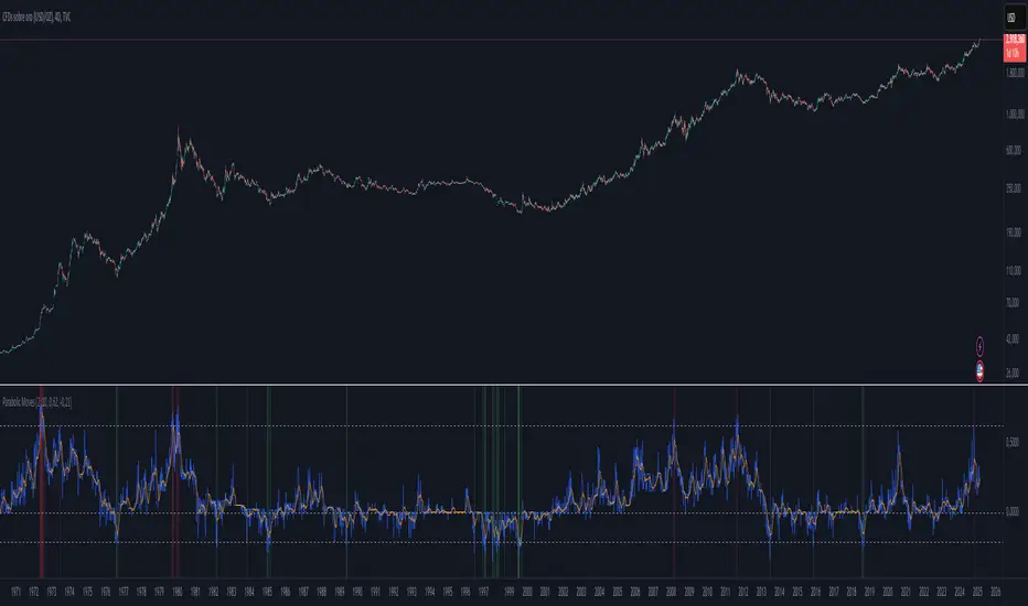 This indicator is designed to identify parabolic price movements, helping traders spot early signs of accelerated momentum in any asset. It highlights conditions where price action enters a parabolic phase, providing insights into potential trend continuation or exhaustion points.