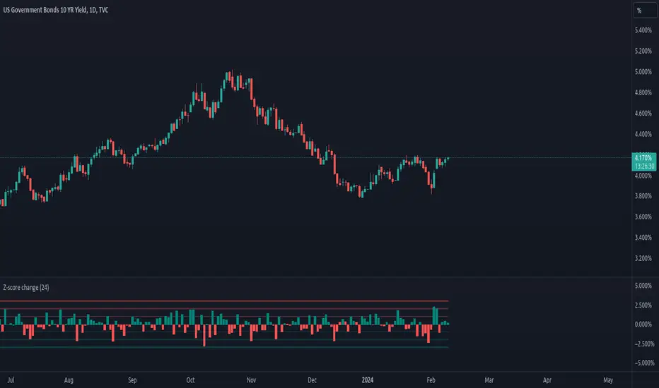 Here is the "Z-score change" indicator that calculates up/down moves normalized by standard deviation (volatility) displayed as bar chart with 1,2 and 3 stdev levels.