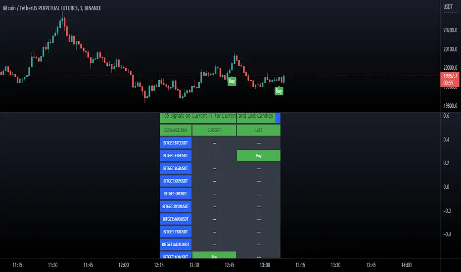Above you can see Bitcoin printed on the chart 3 candles prior, and several FSS buy signals on the table below the chart. *I am using low timeframes for the chart because I could not find any current signals on higher timeframes.