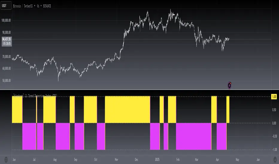 OVERVIEWThe **TradingView** indicator *[blackcat]* **L1 Trend Detection Index (TDI)** 📈 helps traders identify trends in financial markets by calculating a proprietary index based on price momentum and sums. It provides clear visual signals for market positions, making it easier to spot potential buy or sell opportunities. The script uses advanced mathematical calculations to determine the trend detection level and plots the results in an easy-to-read format. Ideal for both novice and experienced traders looking to enhance their technical analysis toolkit.