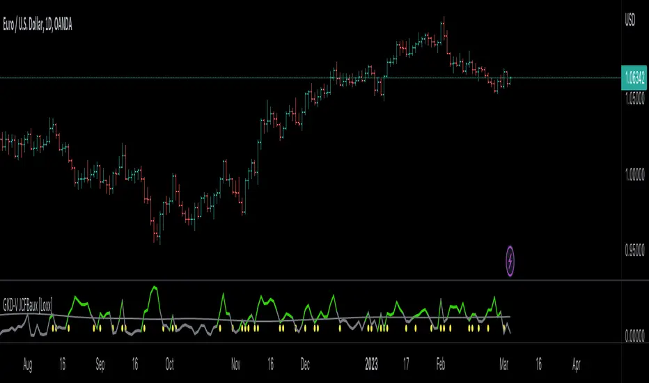 JCFBaux is a custom volatility indicator that is designed to detect early spikes in volatility in financial markets. It is often used in conjunction with other momentum indicators to provide confluence in trading decisions. The indicator includes a Jurik-filtered signal line that acts as a cutoff for when volatility is low. Additionally, JCFBaux is used to calculate Jurik's "Composite Fractal Behavior". This is a non-directional GKD-V Volatility/Volume indicator.