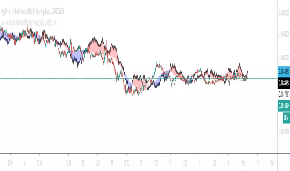 "CryptoFactor" = This is the weighting given to the movement of the Crypto-Index. Essentially, this is the factor as to how much the movement of the Crypto-Index effects the weight of the moving average. If you set this at 0, the line will be a simple moving average of the set length without any affect of the Crypto-Index.