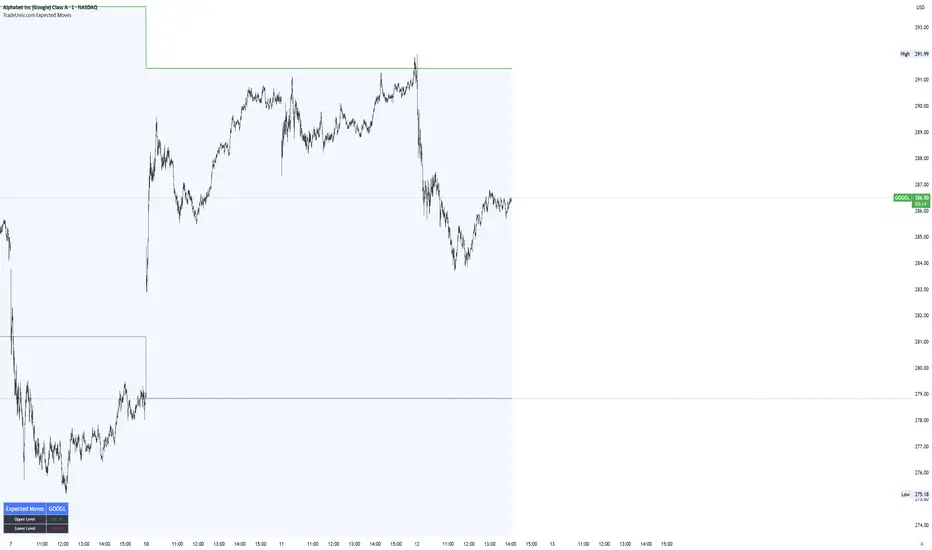 Expected moves are calculated from option prices and show where the market thinks a stock is likely to trade by the end of the day or week. Think of them as probability zones - when price reaches or crosses these levels, it may signal an unusual
