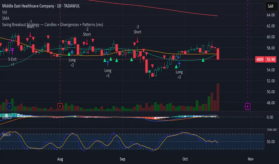 Swing Breakout Strategy — Candles + Divergences + Patterns (rev)