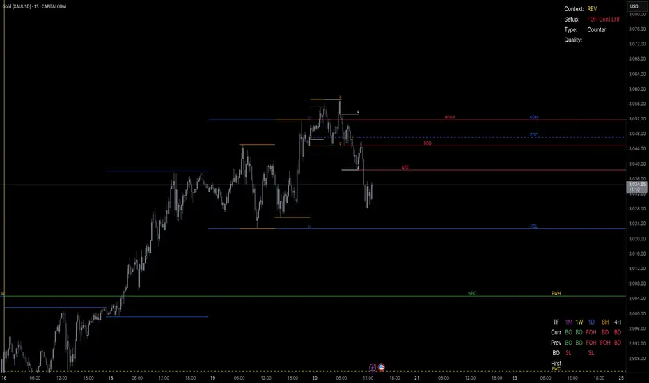 Due to the fractal nature of markets, this cycle can be observed across all timeframes. The strongest setups occur when there is multi-timeframe alignment. For example, a peak formation and potential reversal on the daily timeframe have higher probability and follow-through when they align with bearish signals on higher timeframes (e.g., weekly/monthly BD/FOH) and confirmation on lower timeframes (H4/H8 FOH/BD). With this perspective, the system enables the trader to follow the trend and momentum while identifying rollover points in a highly differentiated and precise way.