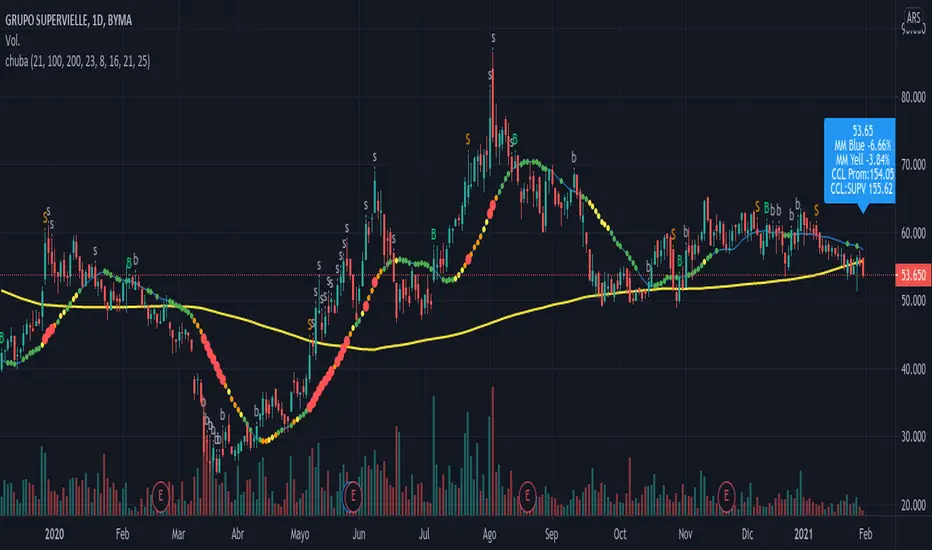 It draws a Simple Media Mobile of 21 days (MM21days) in blue and draws a MM200days in yellow , despite the time frame is Days, Hours or Seconds.
