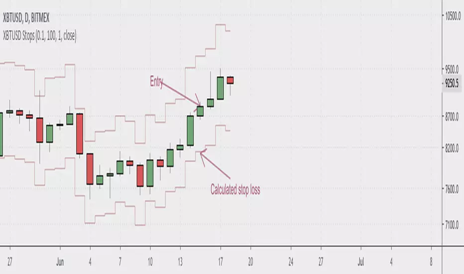 Shows you where to place your stop loss when trading the Bitcoin swap and futures contracts on BitMex. Enter your account size, position size, and desired risk per trade in the indicator settings. If stop seems too tight, use a smaller position size. Most seamlessly used with cross leverage on BitMex. Make sure to keep an eye on the liquidation level for your trades.