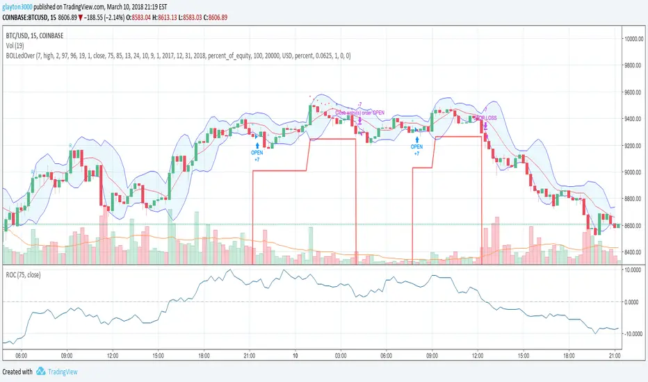 Sell ROC Length number of candles averaged for a negative rate of change, which gives the go ahead to act on a SELL signal. Note: the tighter the Bollinger Bands (e.g. 5) the less likely a SELL will process before a STOP LOSS is reached making this parameter useless in those cases.