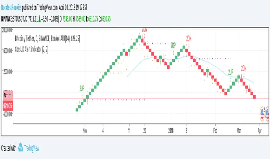 The indicator builds upon the built-in consecutive up/down days strategy script but with some additional features:
