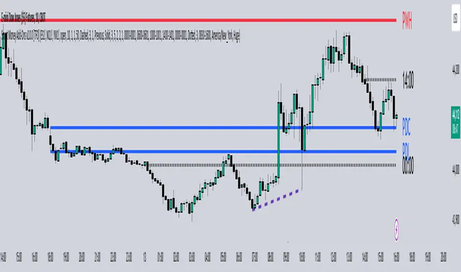 Open price lines can provide intraday levels of interest from important times of day, where the defaults are set to midnight (12:00 AM), 8:30 AM for news releases, and 9:30 AM New York market open (New York local time). The open prices at these times can often act as support and resistance when other confluence factors are present. Higher timeframe points of interest (HTF POI) are also helpful to remain mindful of imbalances and other inefficiencies in which lower timeframe price action may create some reversal structure.