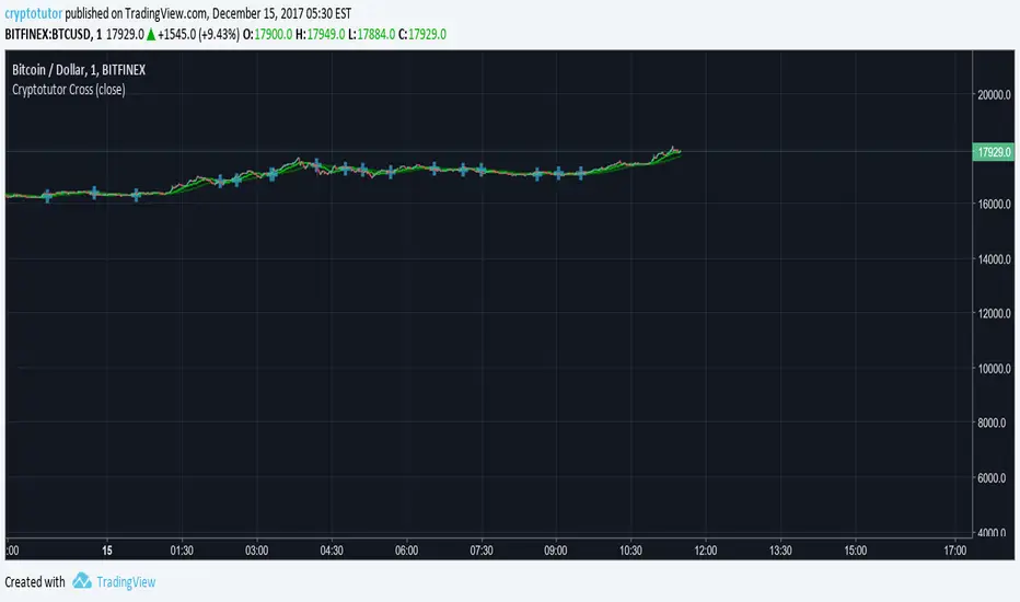 The cryptotutors cross is a lagging indicator that can help detect a change in the trend. For example, it can help detecting an upwards or downwards movement of Bitcoin (on 1H), which can save you a lot of money when you are in altcoins.