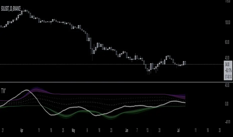 Similar to my MAR° indicator, statistically significant areas based on the past n candles (Lookback) are calculated to provide context for the y-axis values of the TTM indicator.