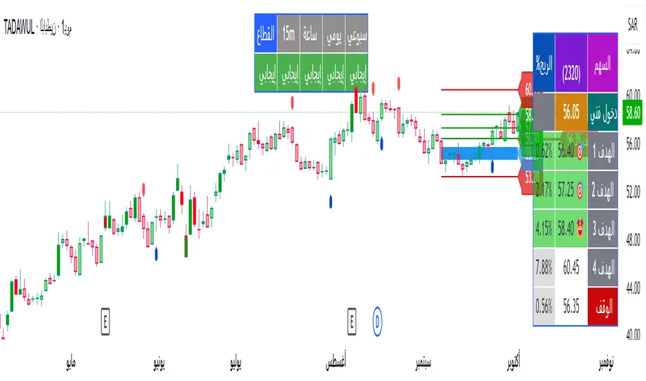 • Four profit targets for partial taking: Gold Lines: Key Target levels (127%, 161.8%) - become green when touched and Higher extensions (227%) for extended trends