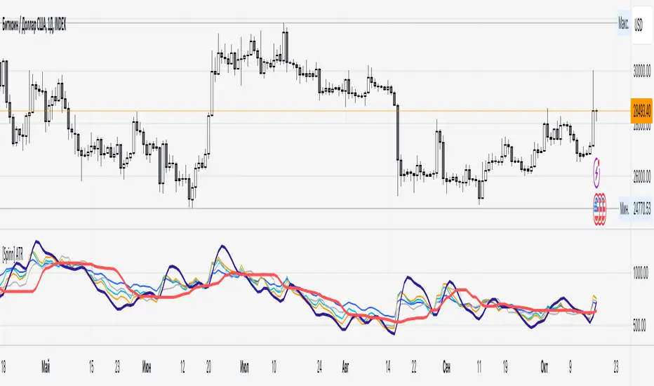 The "Average True Range" indicator is a popular tool that measures price volatility. In this modified indicator, I present two methods of calculating ATR: the outdated classical one based on RMA (EMA, SMA, WMA), and the modernized one using the Super Smoother filter.