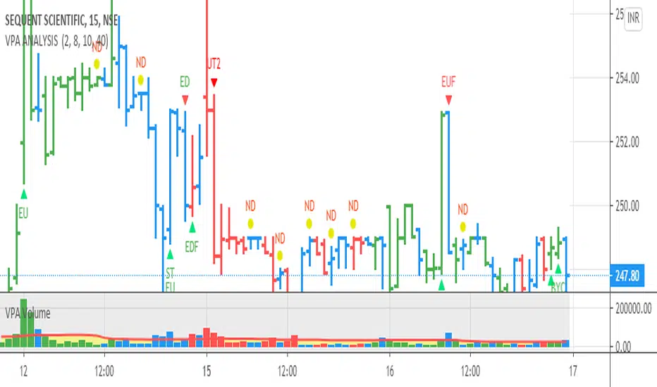 VPA Analysis provide the indications for various conditions as per the Volume Spread Analysis concept. The various legends are provided below