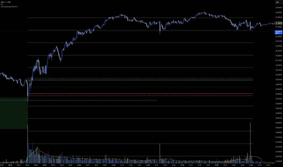 Order-flow confirmation (bid/ask, absorption, momentum shifts) can be helpful when trading reactions at the opening range. If the initial breakout is missed, the pay lines and rotation levels can also be used as structured areas to engage with price as the session develops.