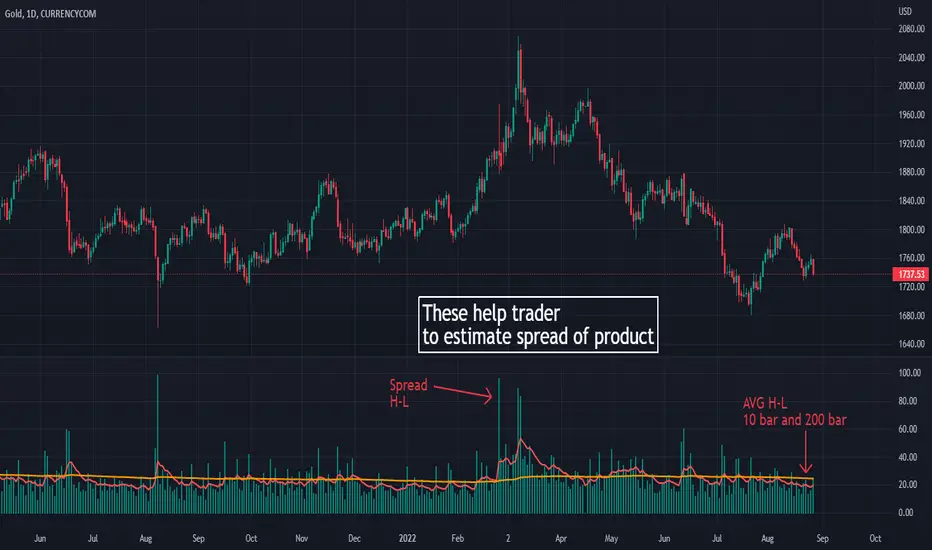 On second picture , I use it on GOLD 1H timeframe . You can see that Gold in hour trade on my country time (thailand) It has more spread on 19.00-23.00 pm (in US time is 7.00-11.00)
