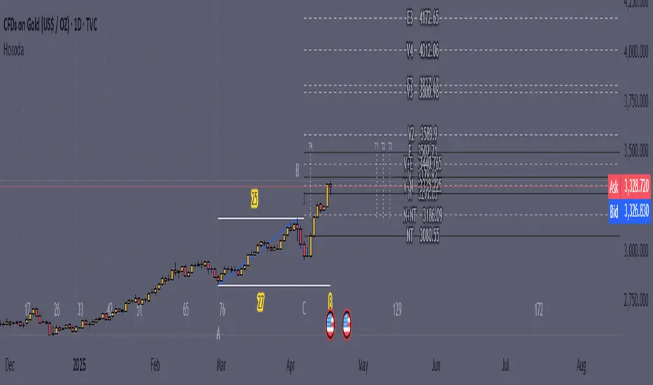 Greetings to traders. I offer you an indicator for trading according to the Ichimoku Kinho Hyo trading system. This indicator determines possible time cycles of price reversal and expected asset price values based on the theory of waves and time cycles by Goichi Hosoda.
