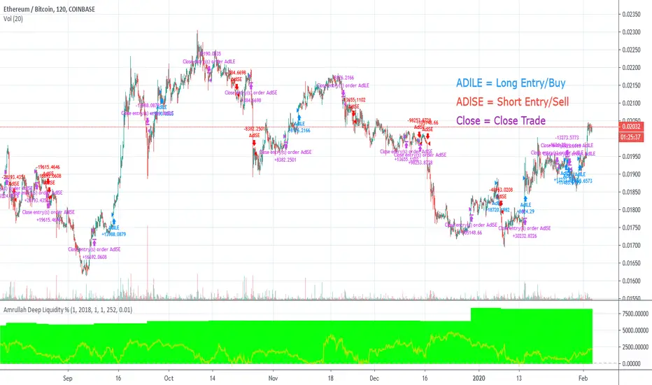 Check that you have been given access to Amrullah Deep Liquidity (ADL). Select ETHBTC with the default 2H time frame. Once done, open Indicators > Invite-Only Scripts > Amrullah Deep Liquidity %.