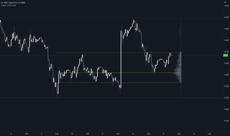 The Sonarlab Volume Profile is focused on combining with SMC, integrated with Smart Money Concepts (SMC) levels, such as the Swing High and Low levels. The Indicator will automatically find the most applicable position using our custom Swing Levels to provide users with maximum utility with zero effort. Where other volume profiles are more focused on overall volume, this volume profile is focused on volume in a specific range on automation using swing points in the market.