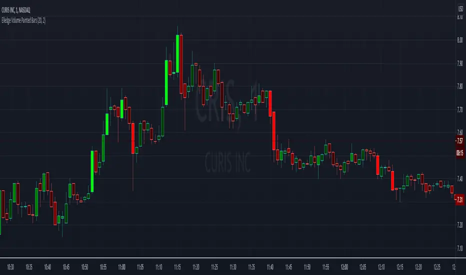 This indicator uses the volume and average volume for the given candle to determine the color for the given candle. The brighter the green, the higher the buyer volume. The brighter the red, the higher the seller volume.
