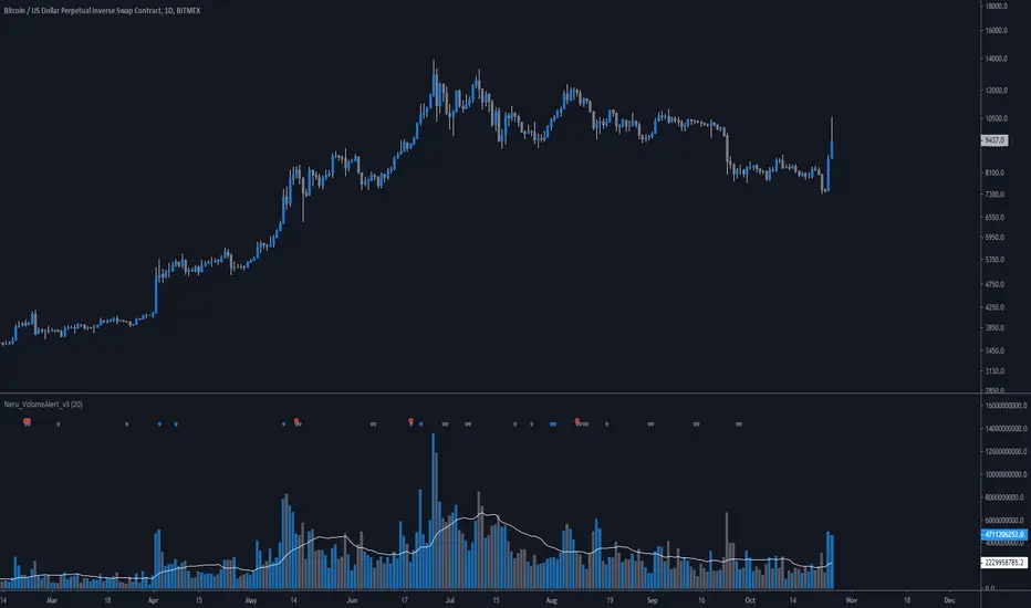 This indicator let´s you set alerts on different events / changes in the volume, that has been added with standard settings.