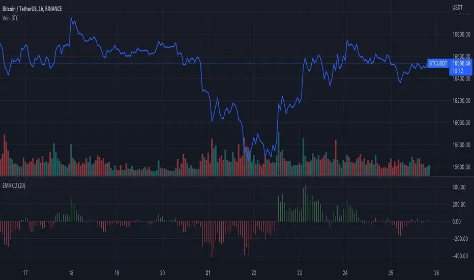This script show you the distance between the close price, and EMA in the histogram.