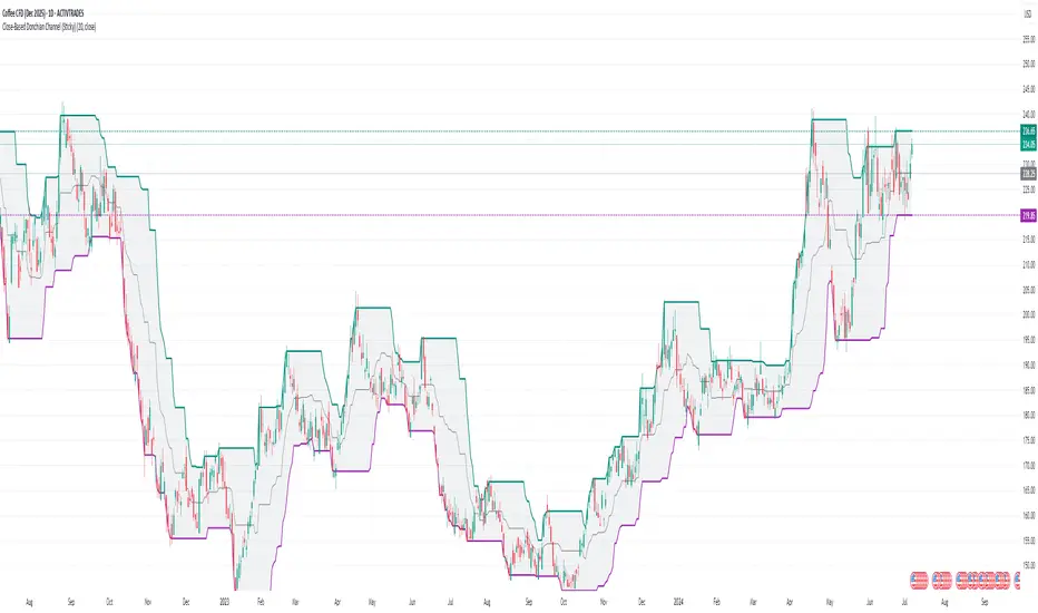 Donchian Channel Script that is referenced of the close of candles rather than highs and lows.