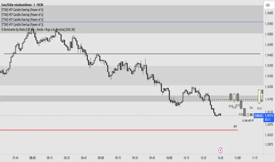 This script automatically identifies the dominant parent candle (CRT – Candle Range Theory) and draws its range with a green box. It also allows you to create independent red parent candles that function autonomously.