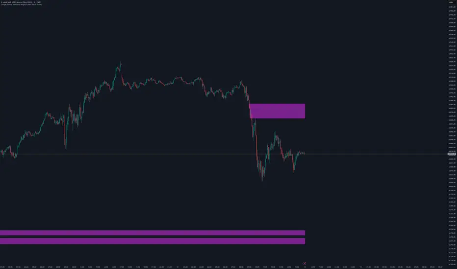 Real-Time Single Prints: Automatically detects and highlights areas of single-print inefficiencies (buying/selling tails) as they happen. These "ghost" boxes persist on the chart until price repairs (fills) them, acting as immediate targets or support/resistance zones.