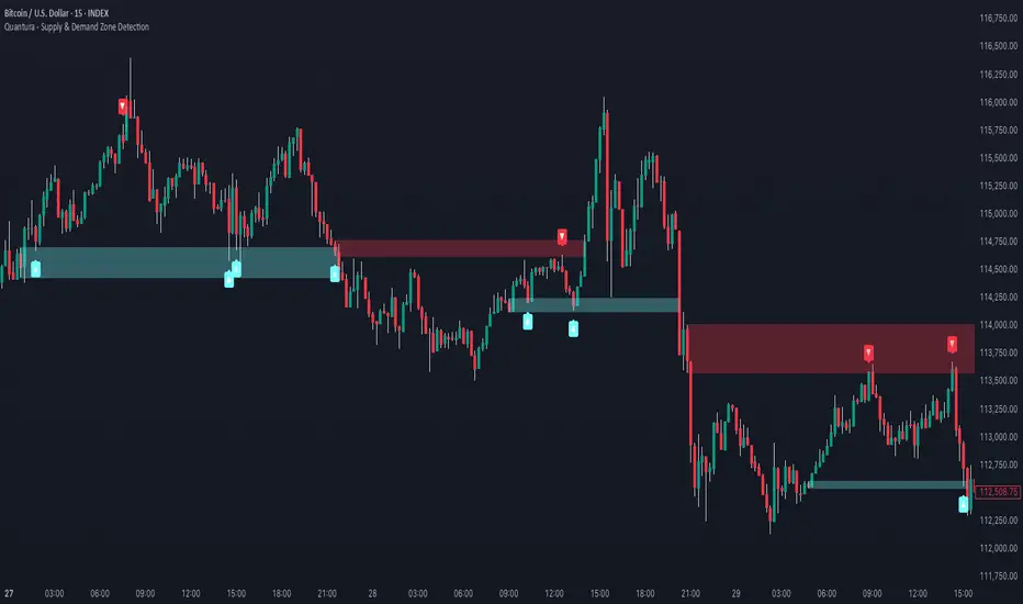 The “Quantura – Supply & Demand Zone Detection” indicator is suitable for all asset classes including cryptocurrencies, Forex, indices, commodities, and equities. It performs reliably across multiple timeframes, from intraday scalping to higher timeframe swing analysis.