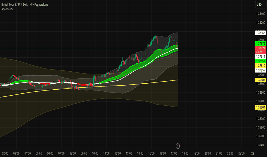 Visual Trend Cloud: Features a multi-layered fill system that distinguishes between the candle "body" (momentum) and "wicks" (volatility range) for immediate trend recognition.