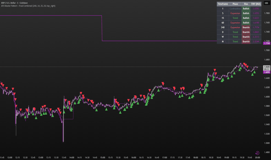 Pattern Multi-TF DashboardPattern indicator is a comprehensive market analysis tool designed to identify the three primary phases of price action: Contraction, Expansion, and Trend. By combining technical momentum (ADX) with price range volatility, this script provides a "top-down" view of the market, allowing traders to see how lower-timeframe price action fits into the broader market cycle.