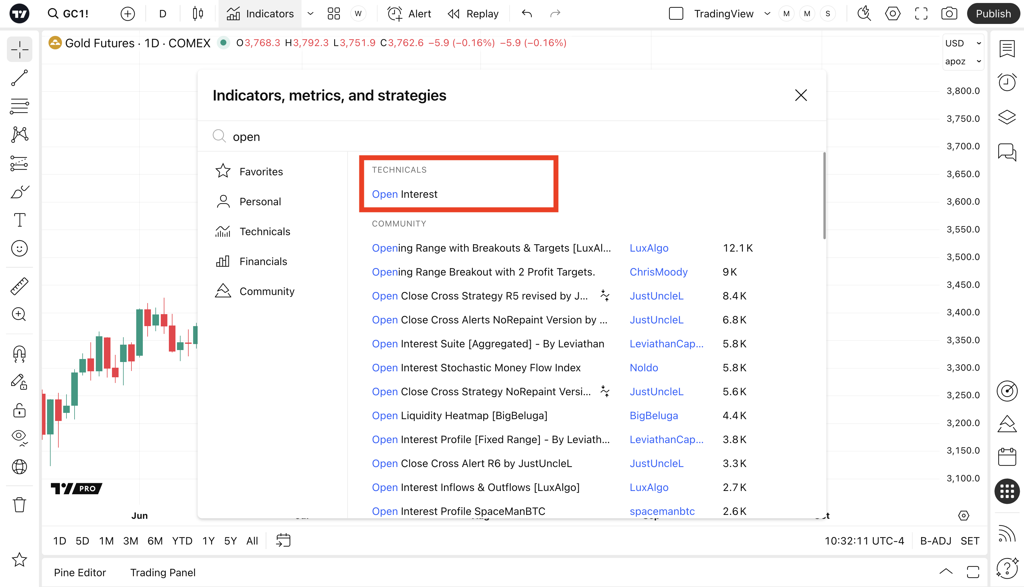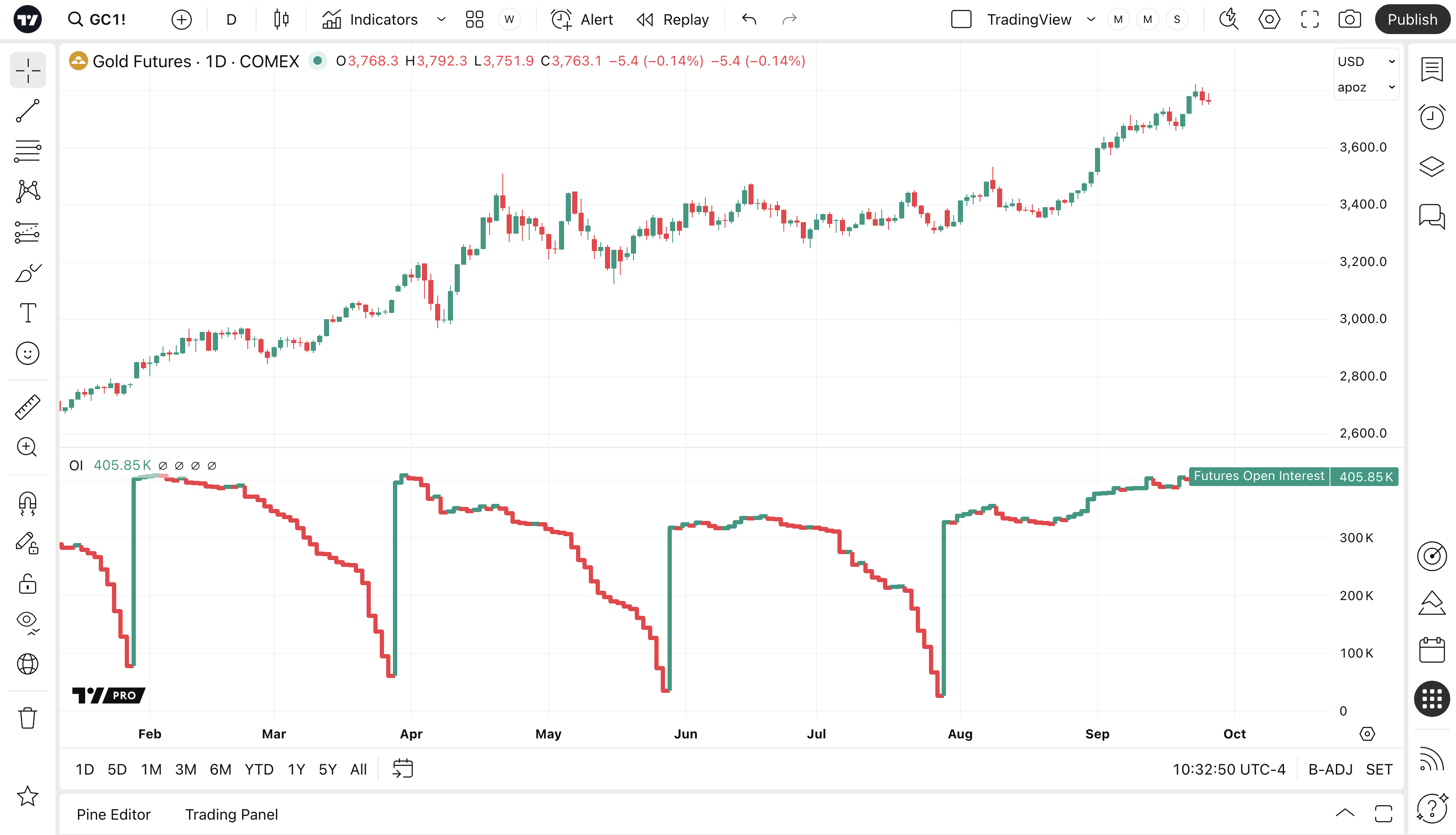 Pada carta, data Open Interest adalah tersedia sebagai penunjuk Open Interest: