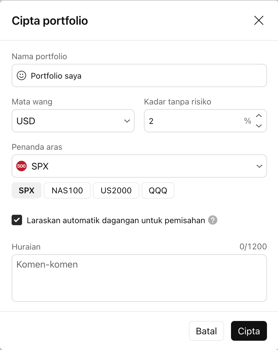 Selepas mengklik, satu tetingkap pop keluar dengan tetapan untuk portfolio baharu akan muncul.